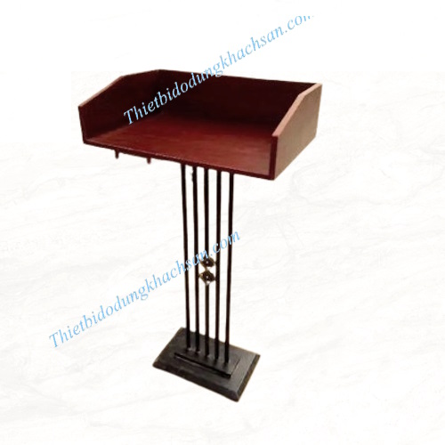 Bục phát biểu có kiểu dáng đơn giản với chân sắt sơn, mặt bục gỗ hiện đại