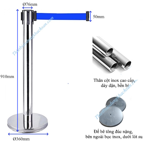 Cột chắn inox dây kéo 5m xanh là giải pháp hiện đại giúp quản lý không gian, phân chia khu vực và giữ trật tự hiệu quả. Với thiết kế inox bền đẹp, sáng bóng kết hợp dây kéo xanh nổi bật, sản phẩm không chỉ tiện dụng mà còn mang tính thẩm mỹ cao. Đây là lựa chọn lý tưởng cho nhà hàng, khách sạn, sân bay, trung tâm thương mại hay sự kiện đông người, khi cần một cột inox phân luồng lối đi chất lượng, dễ sử dụng và đảm bảo tính chuyên nghiệp.