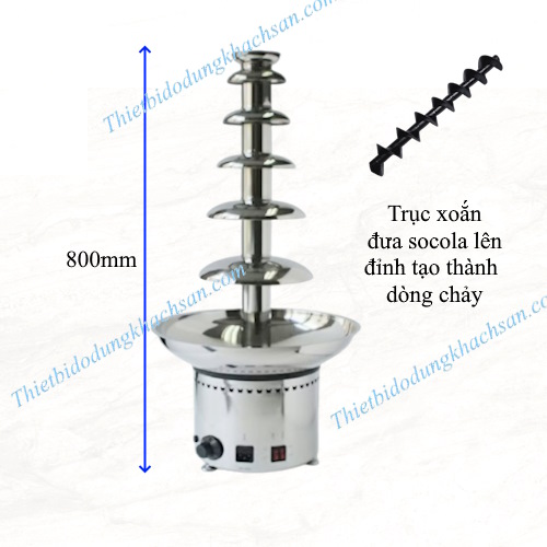 Tháp phun socola 5 tầng là thiết bị sang trọng, giúp bữa tiệc trở nên ấn tượng và đẳng cấp hơn. Với thiết kế hiện đại, dung tích lớn, sản phẩm phù hợp cho tiệc buffet, nhà hàng, khách sạn hay tiệc cưới. Ngoài việc phục vụ socola fondue, tháp còn có thể dùng với sốt phô mai, caramel, mang lại trải nghiệm thưởng thức độc đáo.